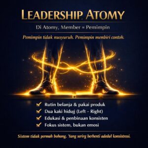 “Di Atomy, bonus keluar bukan karena rajin, tapi karena 2 kaki hidup . Mau saya dampingi 30 hari supaya kaki kanan aktif?”