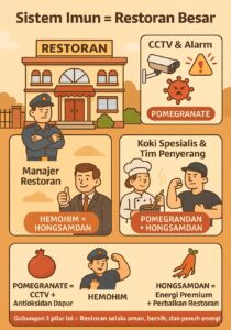 - Hemohim berfungsi seperti kepala dapur & tim kebersihan yang menjaga supaya dapur tetap bersih, sehat, dan koki tetap kuat.